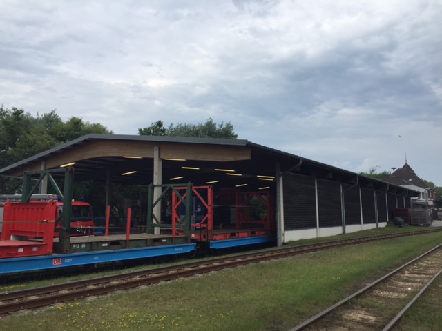 Neubau der Umschlaghalle, sowie neue Pflasterung der Bahnsteige